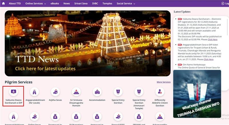 - During the registration window (27 Nov – 1 Dec 2025), go to the Vaikunta Dwara Darshan / E-Dip section.