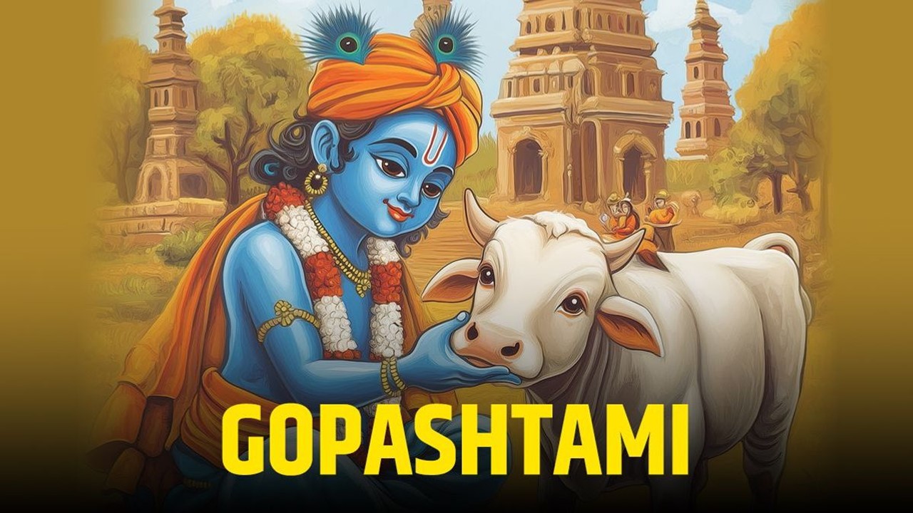 Each year on the Kartik Shukla Ashtami tithi, devotees across North India and particularly in the sacred Braj region mark Gopashtami — the day when Lord Krishna, entrusted with the herd by his father Nanda Maharaj, first tended the cows.