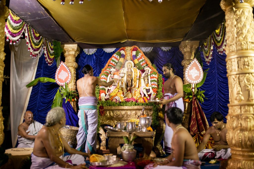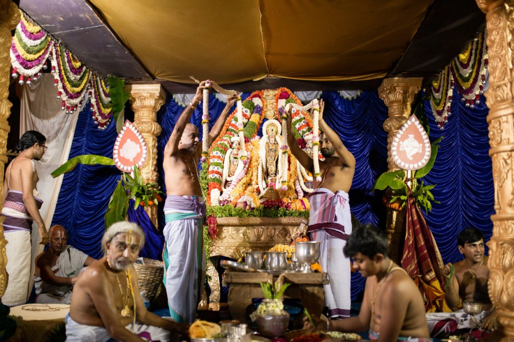 A grand Sita Rama Kalyanotsava was conducted to celebrate the event. Sankalpa and archana was performed for every devotee who visited to attend the celestial wedding. As the Kalyanotsava progressed, a simple commentary on every ritual was narrated to make devotees understand the significance of the rituals. At the end of the Kalyanotsava devotees were served Tirtha and shatari.